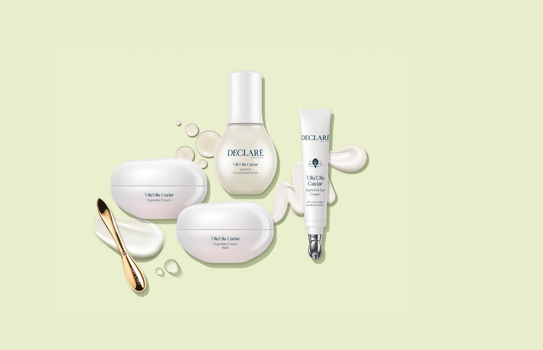 ‘Olu ‘Olu vertelt over de magie van Hawaï en mythen van de Zuidzee. Samengebracht in unieke huidverzorging, gemaakt met waardevolle Moai-algen en verrijkt met kostbare saffraan. Geïnspireerd door de aloha-geest van Hawaï, heeft de onderzoeksafdeling van Declaré een duurzame, luxueuzer en goed verdraagzame Caviar Supreme-verzorgingslijn gecreëerd, die de gevoelige huid in een staat van diepe sereniteit brengt en tegelijkertijd een luxueus anti-agingeffect belooft.
